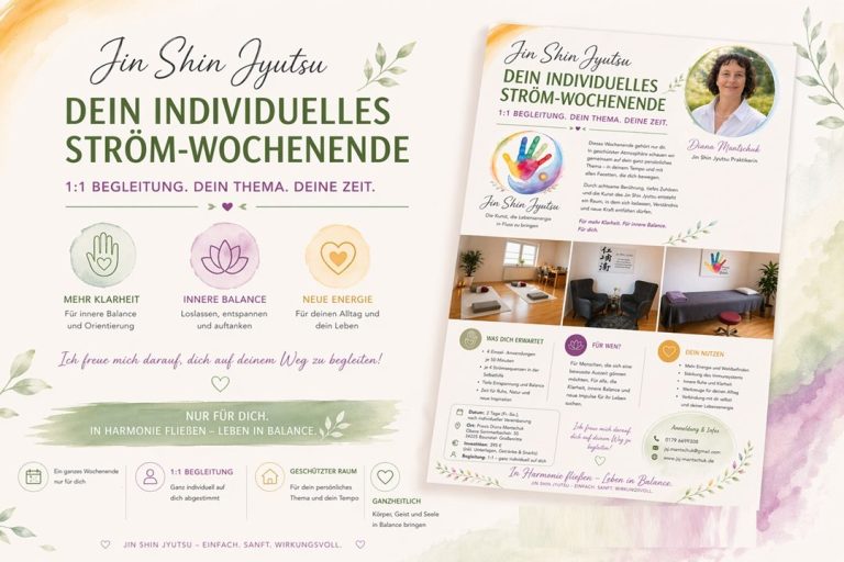 Durch tiefes Zuhören, achtsame Begleitung und die Kunst des Jin Shin Jyutsu entsteht ein Raum, indem Loslassen möglich wird, Verständnis wächst und neue Kraft sich entfalten darf.
