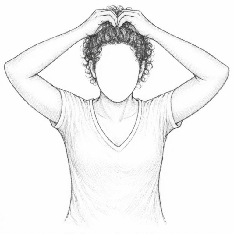 Hierbei legen sich die Fingerspitzen auf der Kopfmitte im Bereich des Scheitels ab.